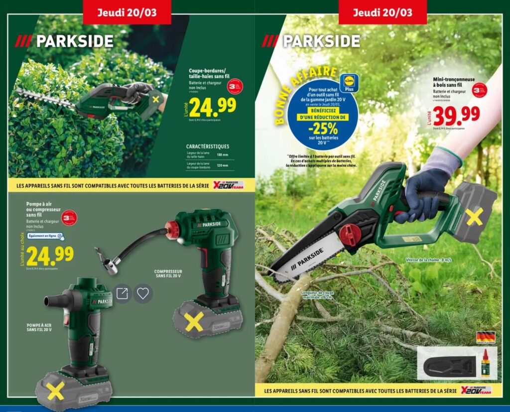 5 réflexions au sujet de “Lidl frappe fort avec le plus grand arrivage Parkside de l’année (10 pages de produits à prix cassées)”