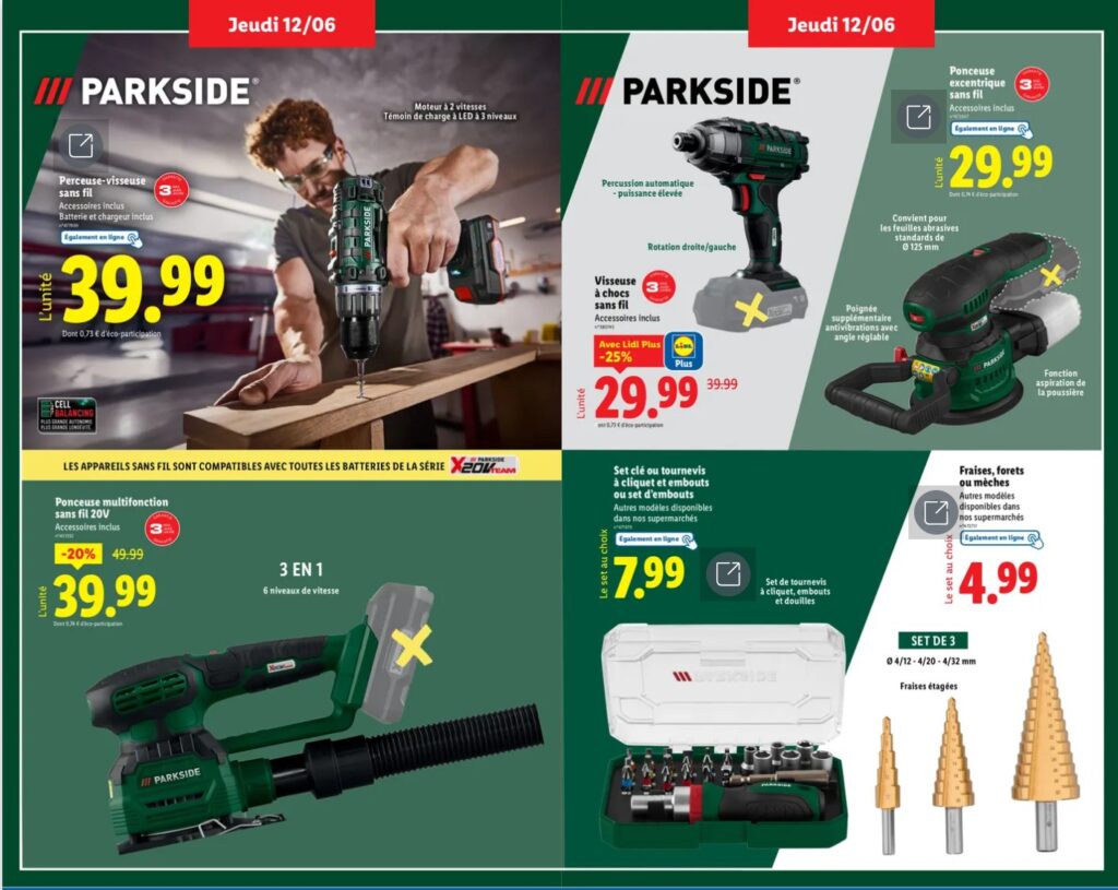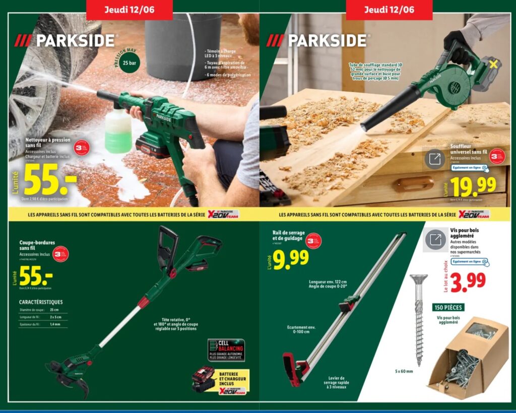 Lidl nous régale avec son arrivage Parkside de juin, 4 pages remplis de promo dispo en ce moment en magasin