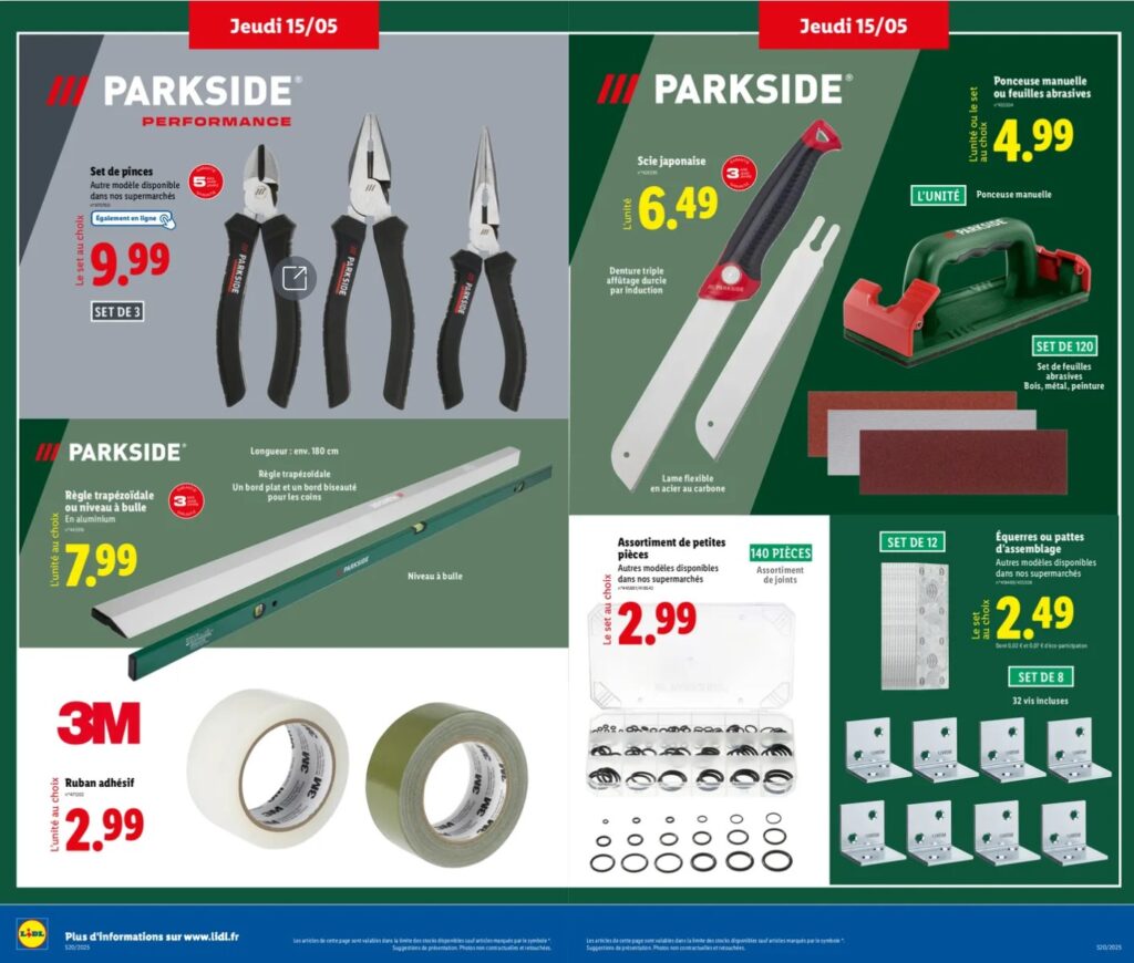Chaque semaine, Forcemat scrute les arrivages Parkside pour vous dénicher les meilleures opportunités. Ce jeudi 15/05, ne manquez pas les nouveautés incontournables qui vous aideront à mener vos travaux comme un pro, tout en réalisant de belles économies.
