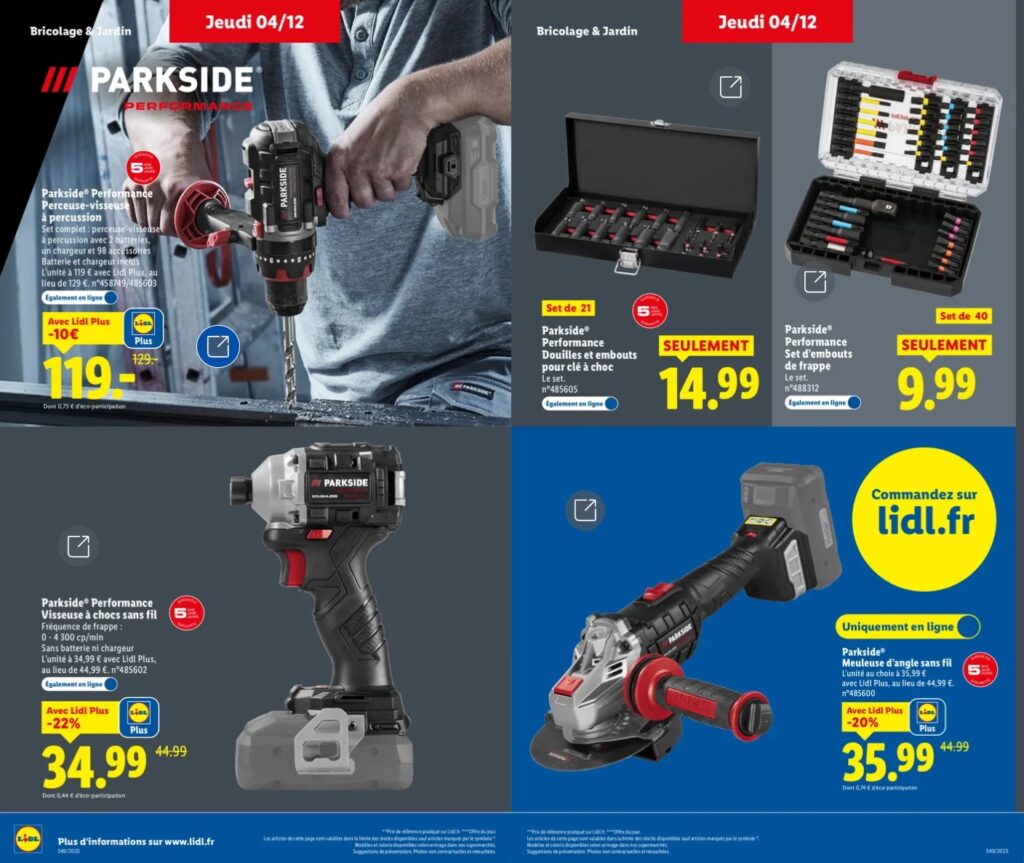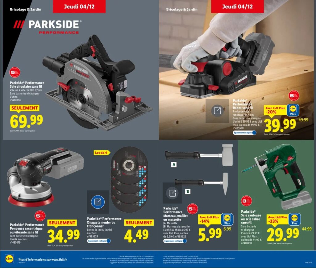 Découvrez la Meuleuse d’angle sans fil Parkside Performance, un outil incontournable pour vos découpes et finitions. Vendue uniquement en ligne, cette meuleuse est disponible à 35,99 € grâce à Lidl Plus, soit une réduction de 20 % par rapport à son prix habituel de 44,99 €.