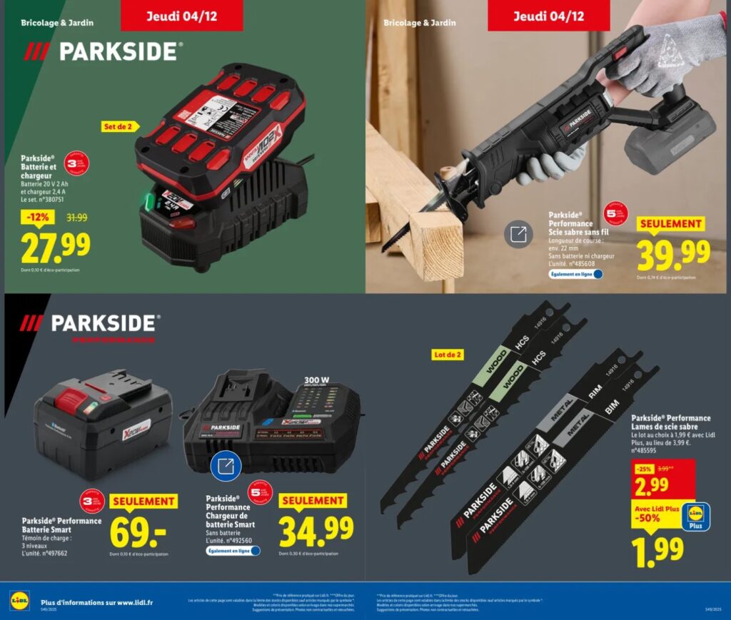 Les lames de scie sabre Parkside Performance se composent d’un lot de deux pour une coupe optimale dans différents matériaux tels que le bois et le métal. Offert à un prix réduit de 2,99 €, ou de 1,99 € pour les membres Lidl Plus, ce set est indispensable pour compléter votre arsenal de bricolage.
