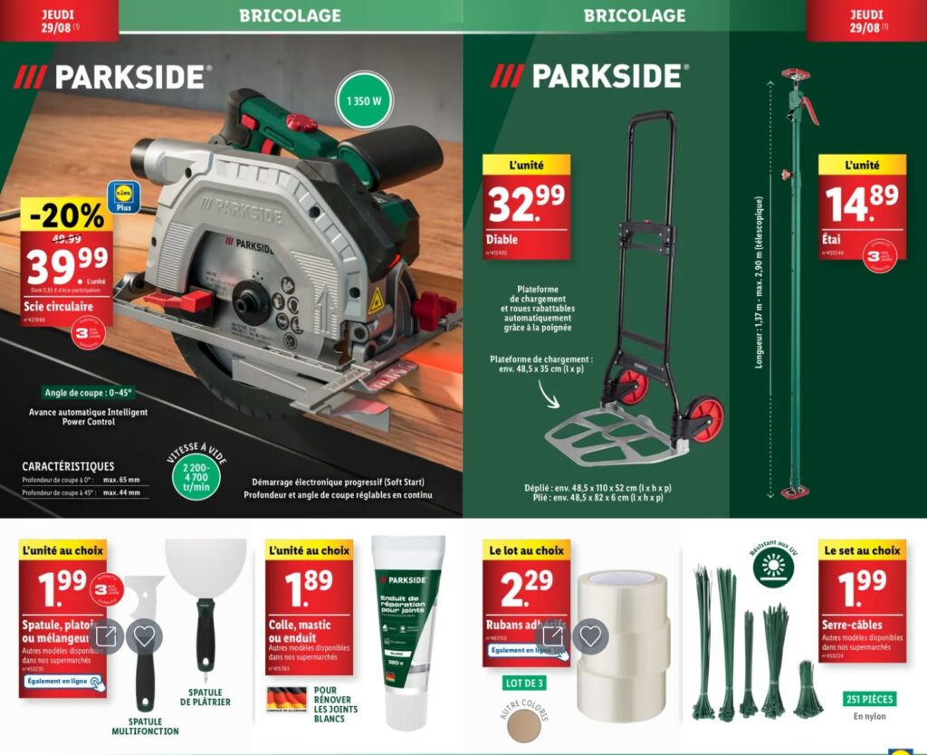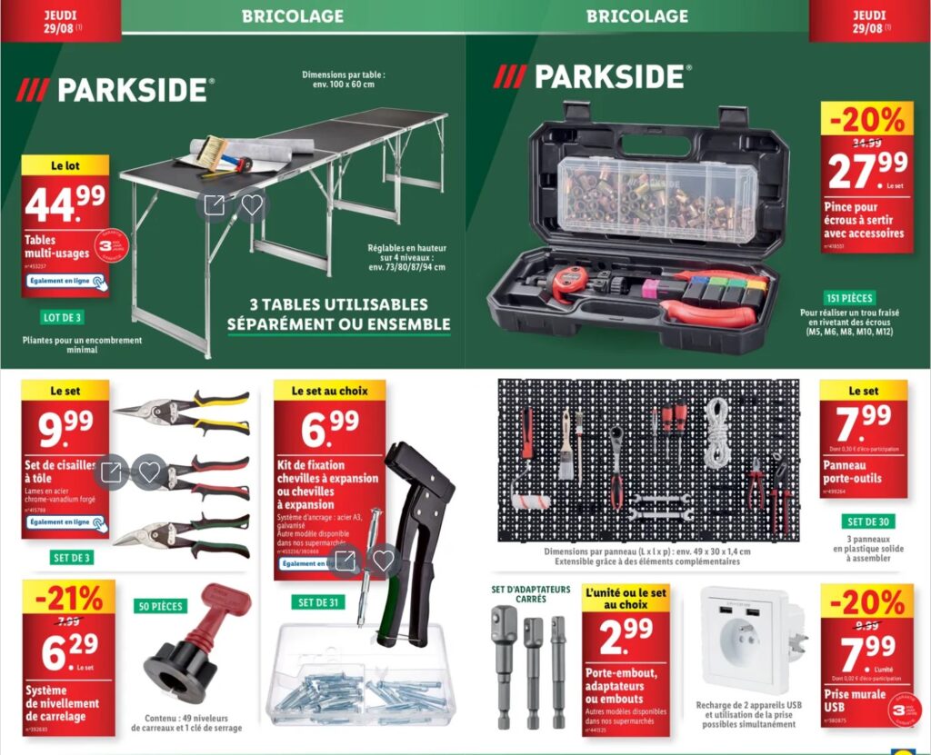 Ces offres exceptionnelles sont disponibles à partir du 29 août. Profitez-en pour équiper votre atelier avec des outils Parkside, reconnus pour leur qualité et leur performance.