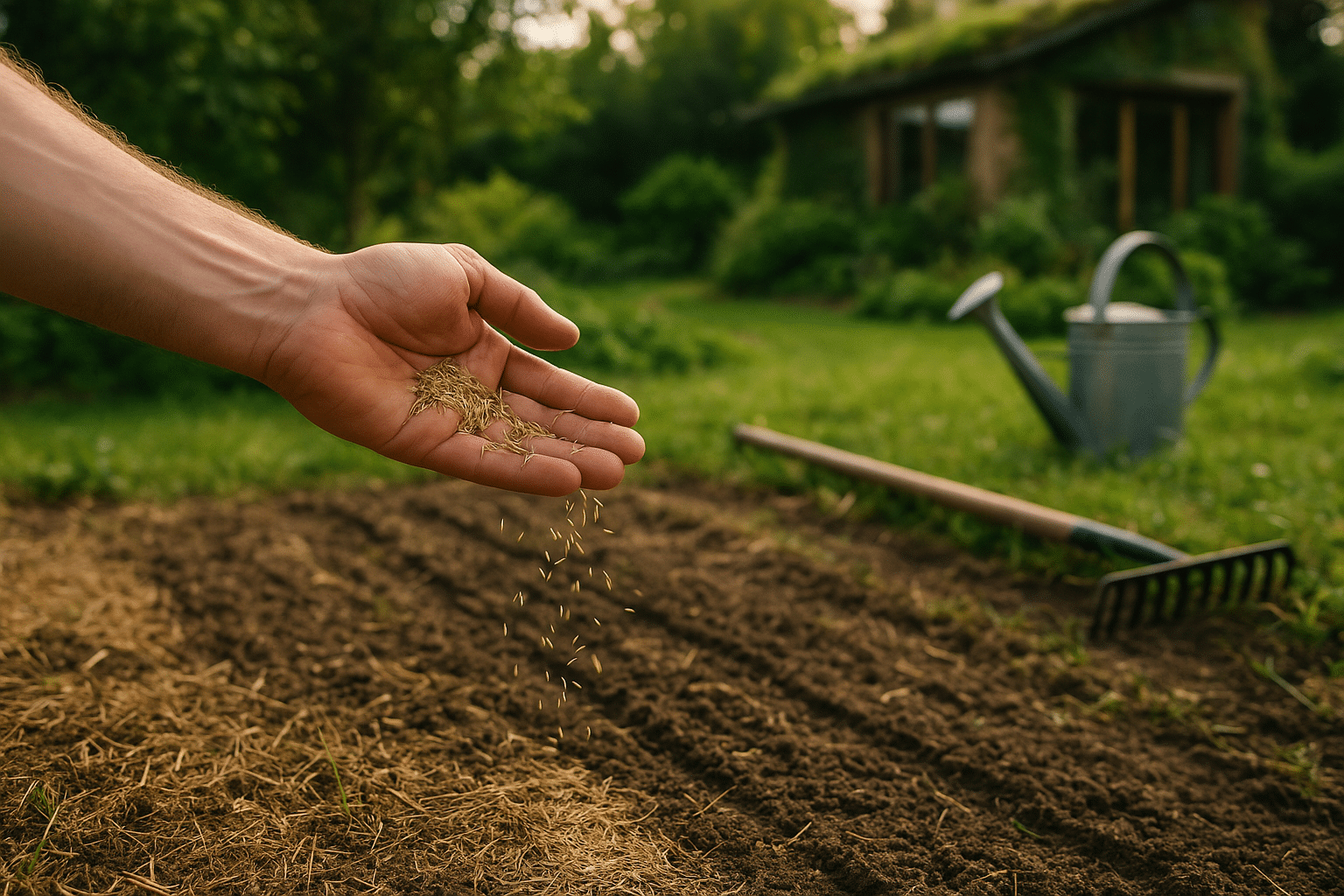 - Répartissez les graines à l’épandeur ou à la volée en croisant vos passages (25-35 g/m² selon le mélange).
